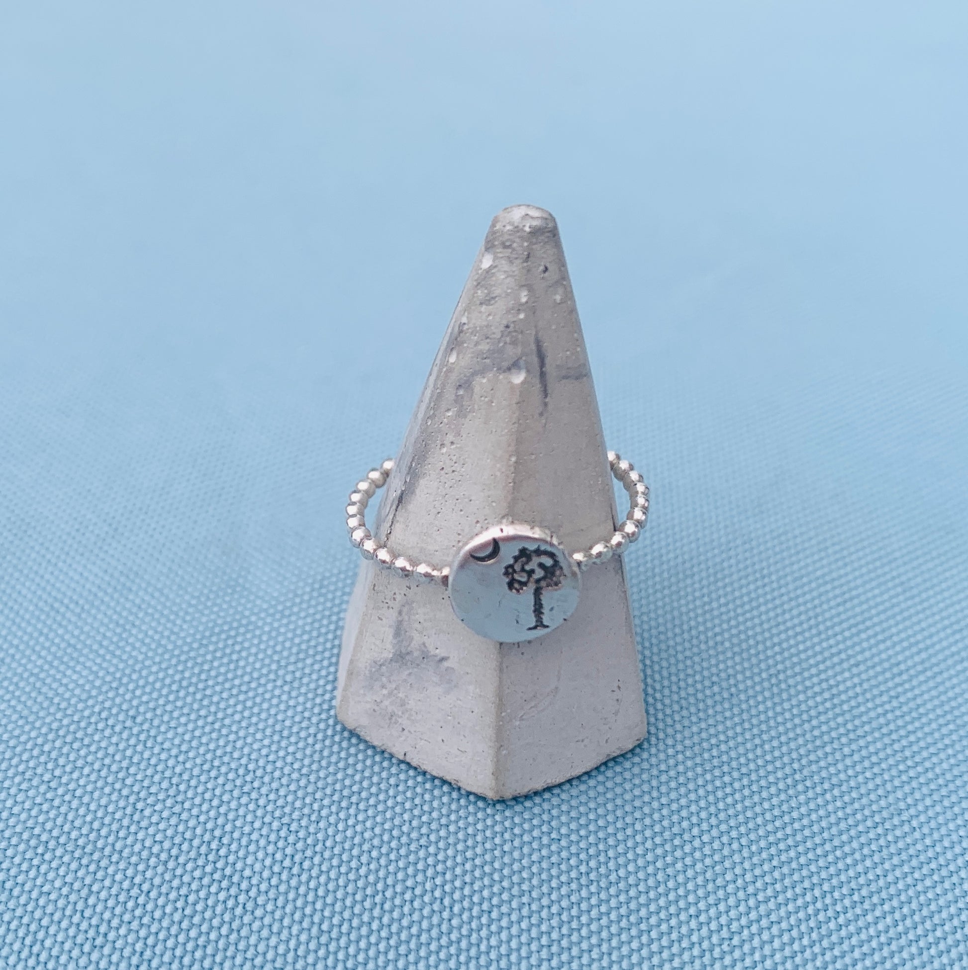 Celebrate your South Carolina pride with this handcrafted sterling silver ring, stamped with the beloved palmetto tree and crescent moon. Sitting on a delicate, but solid beaded silver band, this ring is a versatile piece you can wear everyday. Whether you're a South Carolina native or a coastal soul at heart, this ring is a lasting reminder of a place you call home.